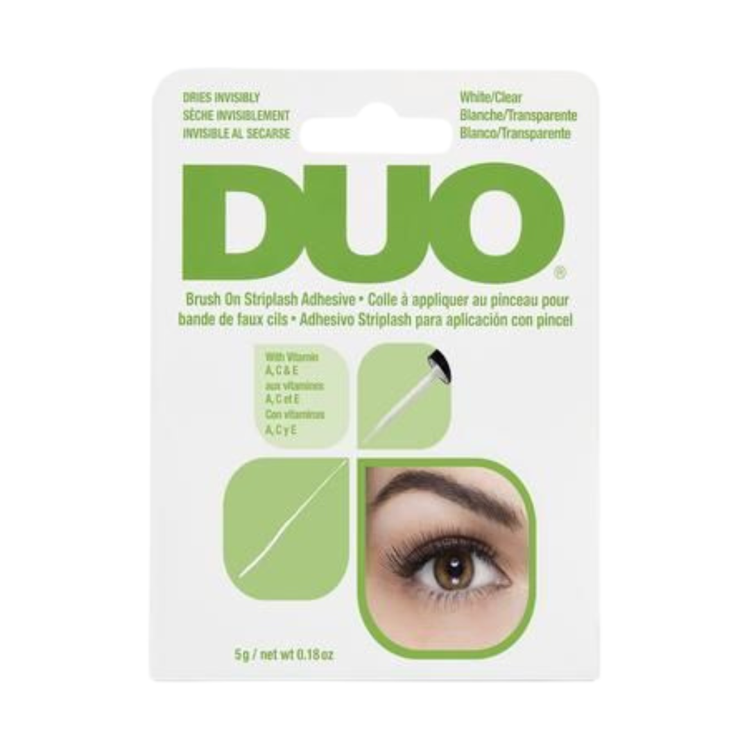 Asegura una aplicación limpia y natural con el pegamento Duo Brush-On transparente. Su fórmula sin color se seca de manera imperceptible, ideal para quienes buscan un acabado profesional sin residuos visibles. El aplicador tipo brocha permite controlar la cantidad de producto y distribuirlo de forma uniforme sobre la banda de las pestañas.